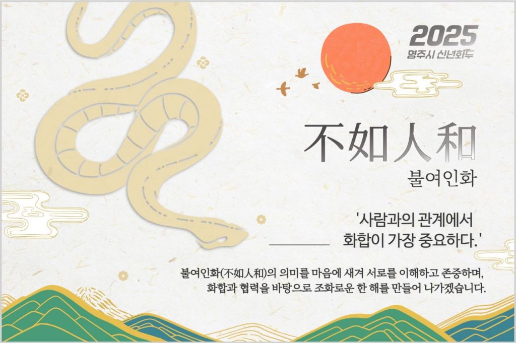 경북 영주시가 2025년 푸른 뱀의 해, 을사년(乙巳年)을 맞아 신년 화두로 ‘불여인화(不如人和)’를 선정했다.