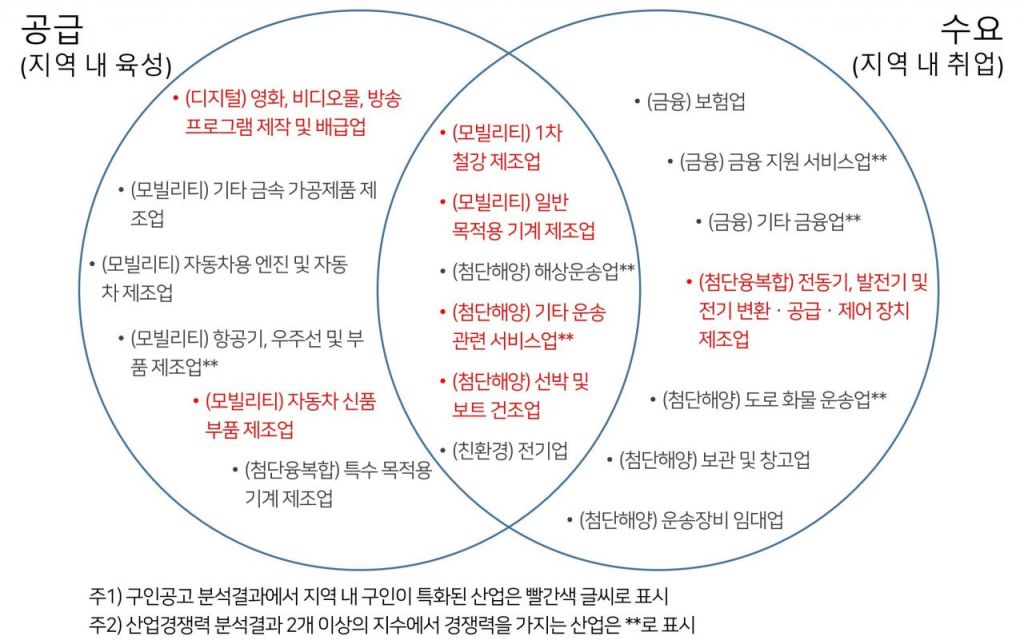 부산시 첨단산업군 공급과 수요 분석 결과.