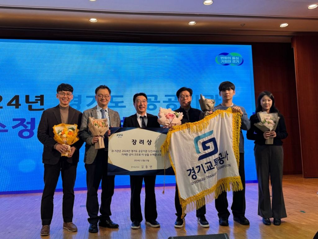 경기교통공사가 지난 23일 ‘똑타’ 앱이 경기도가 주관한 ‘2024년 경기도 공공기관 우수정책·사례 발표회’에서 도민 서비스 분야 장려상을 수상하고 있다. 경기교통공사 제공