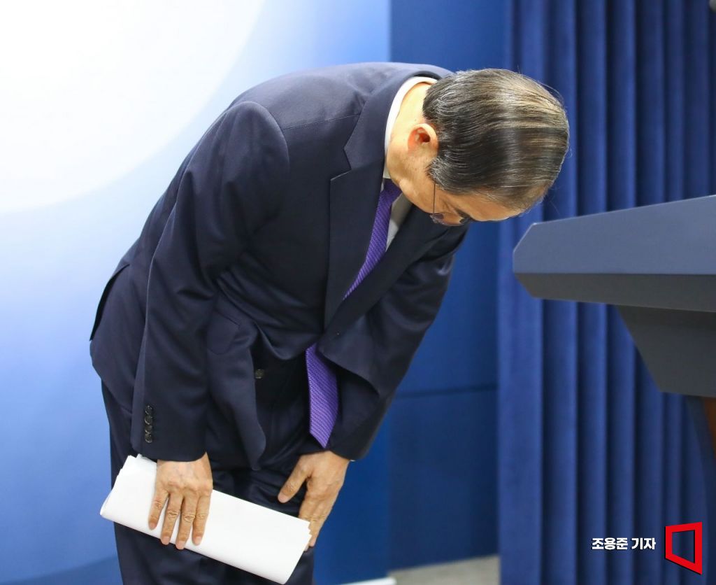 한덕수 대통령 권한대행 국무총리가 26일 서울 종로구 정부서울청사에서 긴급 대국민담화를 발표에 앞서 인사하고 있다. 정부청사사진기자단