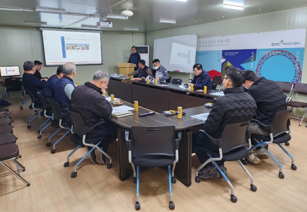 부산도시공사가 일광지구 4BL 통합공공임대주택 환기설비·도시가스공사 안전시공보고회를 개최하고 있다. 부산도시공사 제공