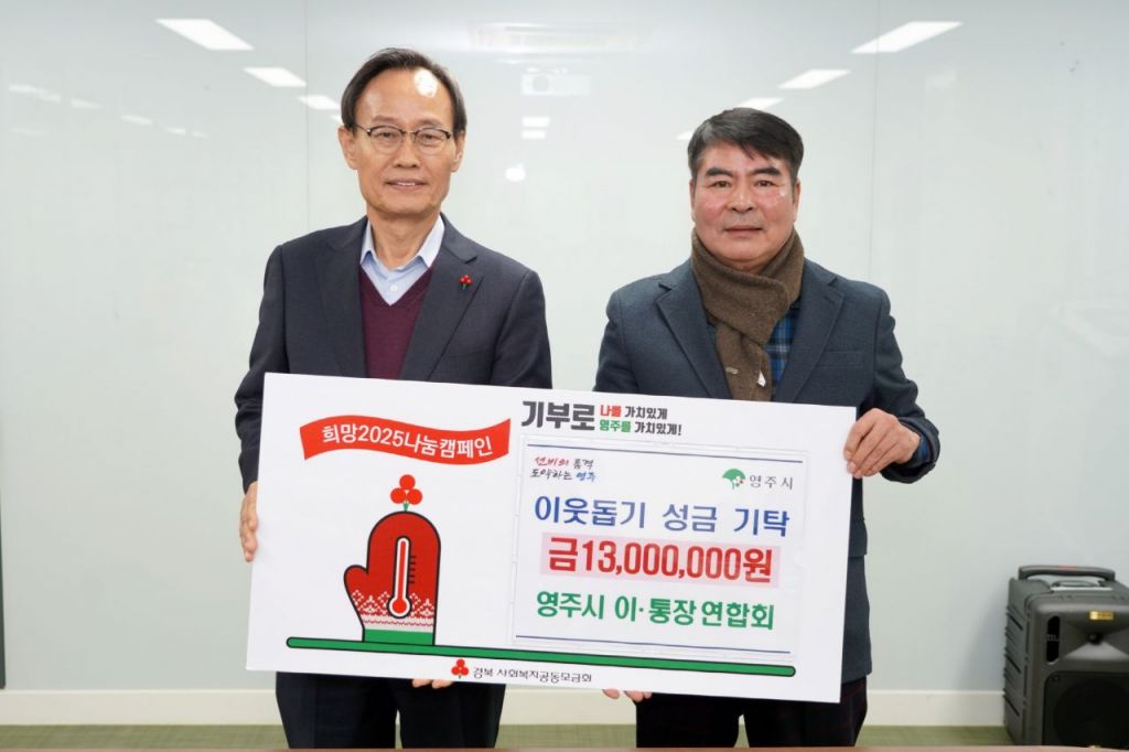 권장현 영주시 이·통장연합회 회장은 “이번 성금은 어려운 이웃에게 조금이나마 도움이 되길 바라는 마음으로 430명의 이·통장들이 함께 모은 값진 나눔의 결과”라며 “지역 사회의 일원으로서 나눔의 가치를 지속적으로 실천해 나가겠다”고 말했다.