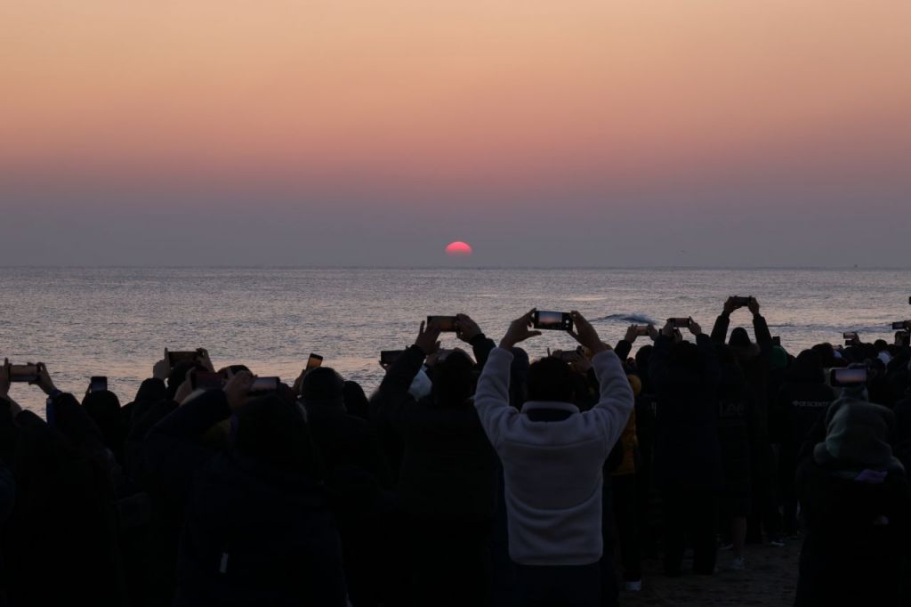 강원특별자치도 양양군의 새해 해맞이 명소 중 하나인 낙산해수욕장에서 관광객들이 2023년 1월1일 해맞이를 하고 있다. 사진=-양양군청 제공