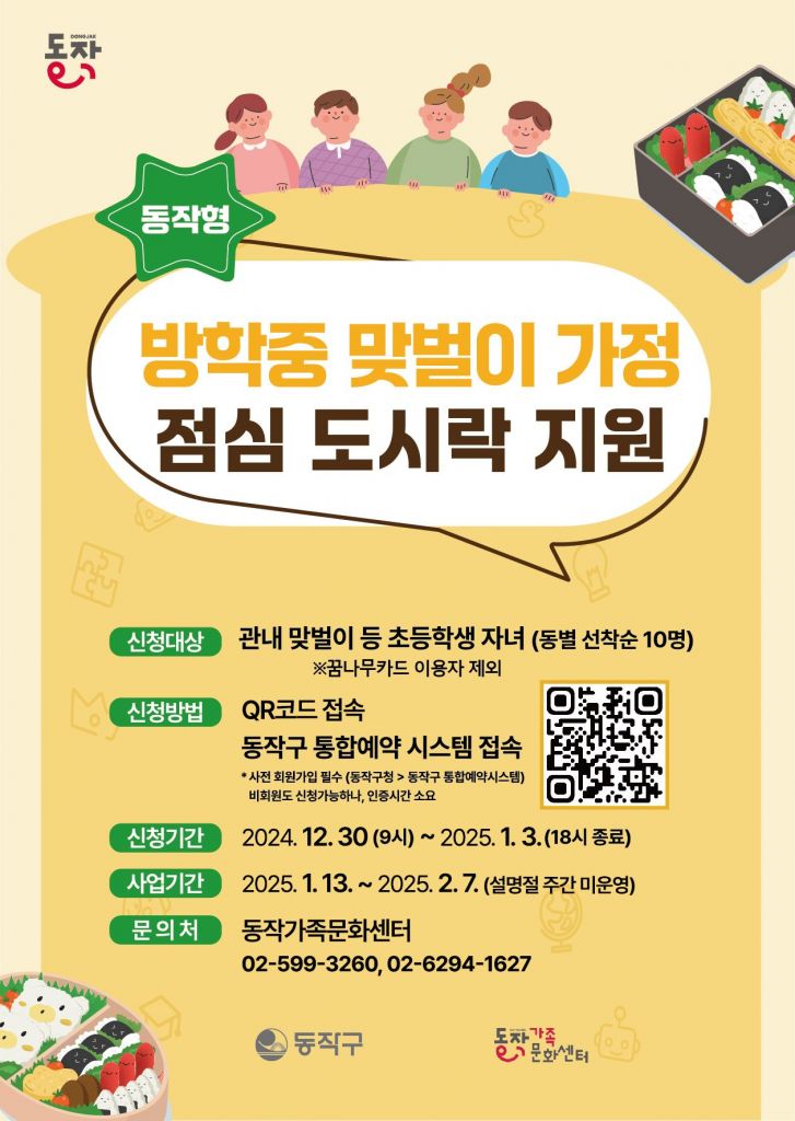 동작구 방학 중 맞벌이 가정 점심 도시락 지원 홍보 포스터. 동작구 제공.