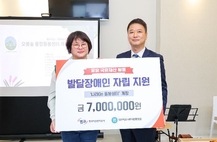 또한 캠코는 ‘나라On 돌봄쉼터’ 운영을 위한 초기 물품 구입 등 실질적인 발달장애인 지원을 위해 운영기관인 뭐든학교 사회적협동조합에 기부금 700만원도 전달했다.