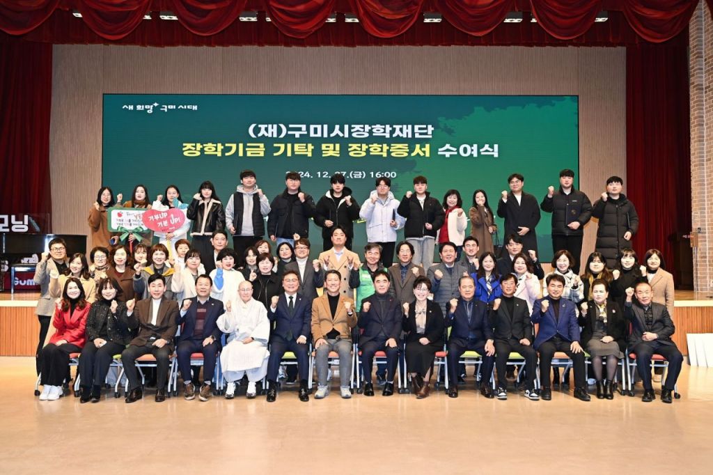 경북 구미시장학재단(이사장 김장호)이 지난 27일 시청 대강당에서 ‘장학기금 기탁과 장학증서 수여식’을 개최했다.