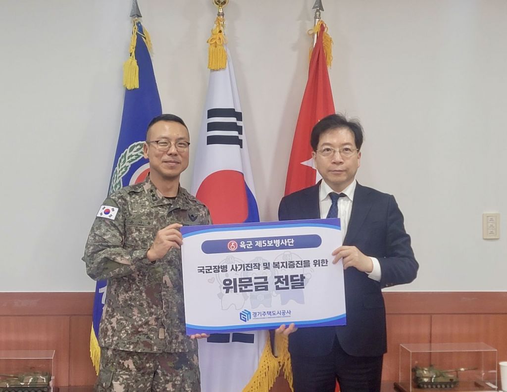 경기주택도시공사(GH)가 연말연시를 맞아 30일 경기도 연천군 육군 제5보병사단을 방문해 위문금을 전달했다.