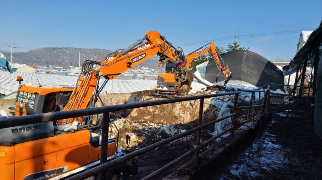 여주시가 지난 11월 26일~28일 내린 대설로 인해 발생한 축산농가 피해 긴급복구 작업을 펼치고 있다. 여주시 제공
