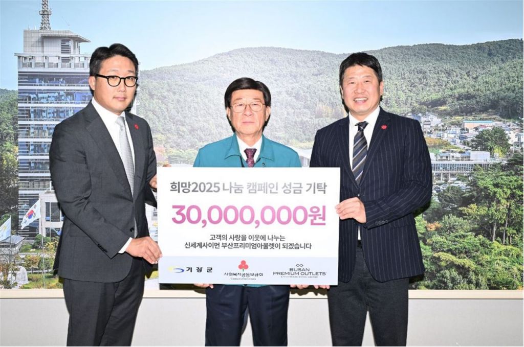 부산 기장군은 지난 26일 신세계사이먼 부산프리미엄아울렛(대표 김영섭)이 지난 26일 ‘희망2025나눔캠페인’ 성금 3000만원을 기탁했다고 30일 전했다.
