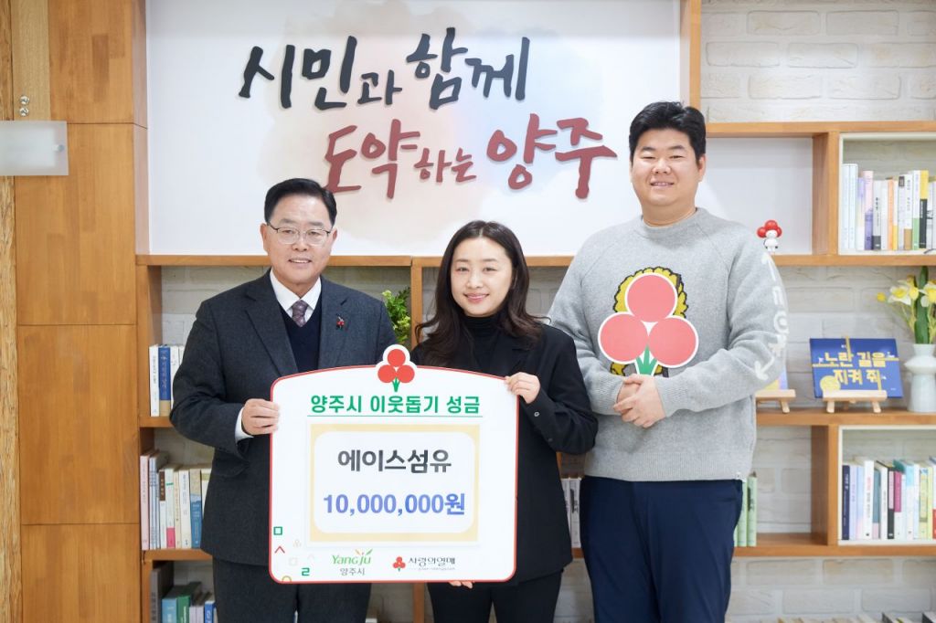이번 전달식에는 강수현 양주시장, 김성훈 이사 및 이혜진 실장이 참석했으며 성금은 경기 사회복지공동모금회를 통해 관내 취약계층에 전달될 예정이다.