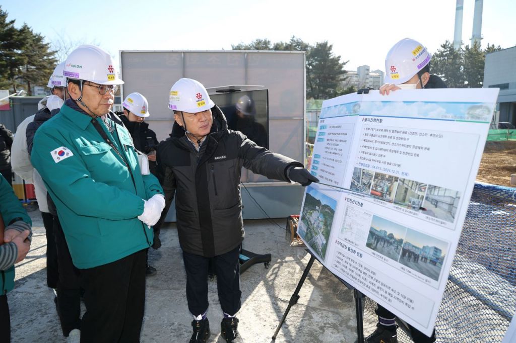 홍태용 경남 김해시장이 부곡동 자원순환시설 현대화사업 현장을 찾아 공사 진행 현황에 대한 설명을 듣고 있다. 김해시청 제공