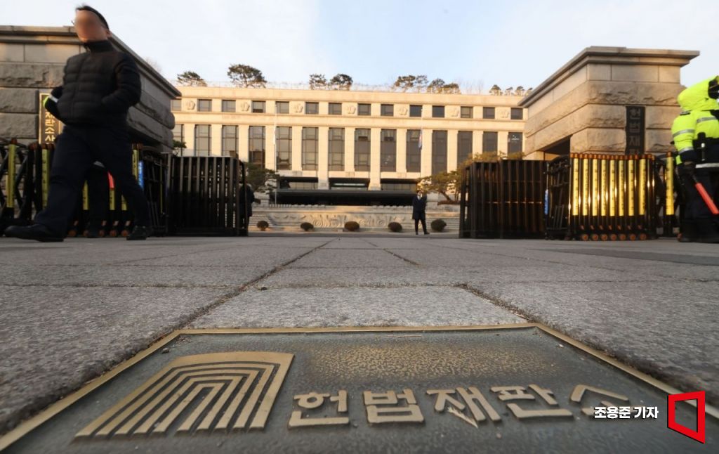 최상목 대통령 권한대행 부총리 겸 기획재정부 장관의 정계선, 조한창 헌법재판관 임명에 따라 헌법재판소가 '8인 체제'가 된 가운데 2일 신임 재판관 취임식이 예정 된 서울 종로구 헌법재판소의 모습.