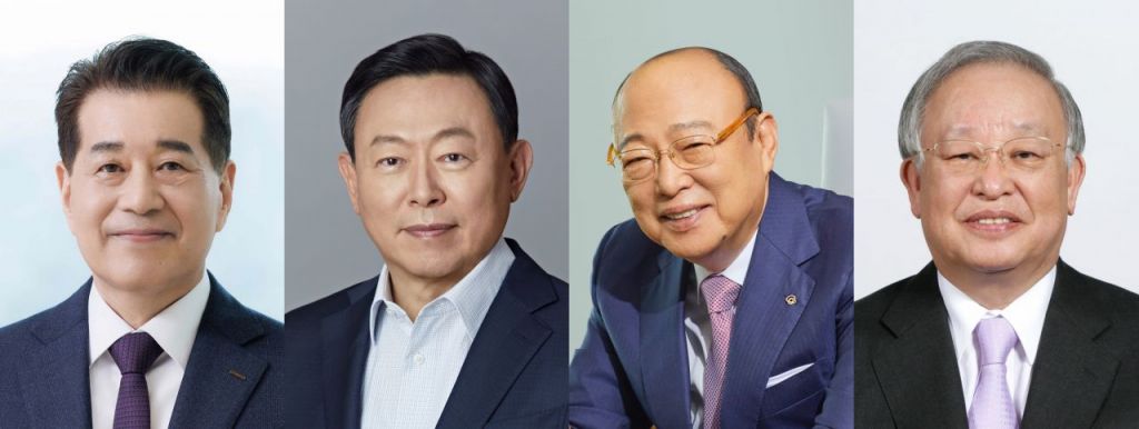 왼쪽부터 장인화 포스코그룹 회장, 신동빈 롯데그룹 회장, 김승연 한화그룹 회장, 손경식 CJ그룹 회장. 각 사 제공