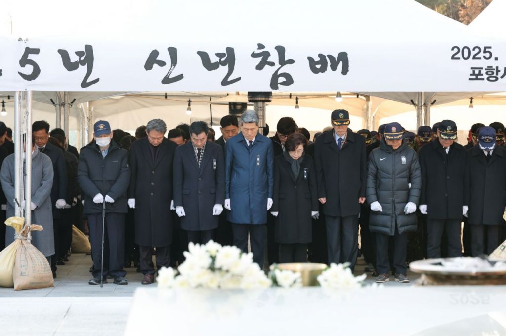 이날 참배에는 이강덕 시장을 비롯해 김일만 시의회 의장, 김정재 국회의원, 시·도의원, 군 부대장, 보훈 단체장, 각급 기관·단체장 등 200여명이 참석해 순국선열과 호국영령의 숭고한 희생정신을 기리고, 2025년 새로운 도약을 위한 각오와 결의를 다졌다.