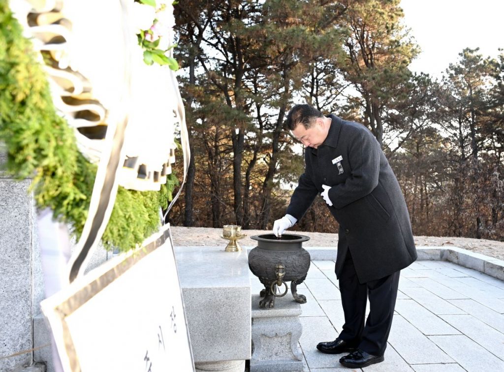 김경일 파주시장이 2일 파주시 학령산에 위치한 현충탑에서 을사년 새해를 맞이해 신년 참배를 하고 있다. 파주시 제공