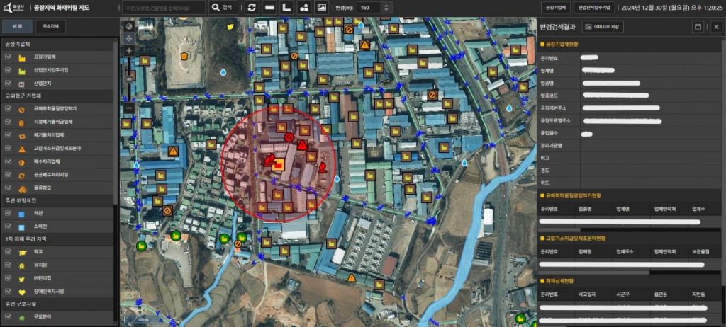화성시가 본격 운영에 들어간 '공장지역 화재위험지도'. 공간정보시스템을 활용한 이 지도는 27개 분야 2만6742건의 데이터를 포함하고 있다. 화성시 제공