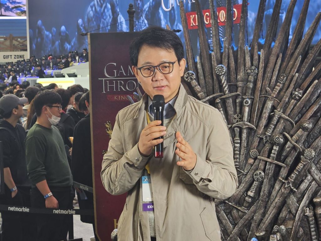 방준혁 넷마블·코웨이 의장이 지난해 11월 부산 벡스코에서 열린 '지스타 2024'에서 기자들과 만나 발언을 하고 있다. 이정윤 기자