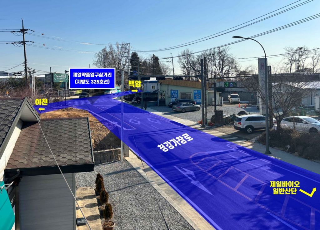 이번 도로 확장은 제일약품과 제일헬스사이언스가 인근에 '용인 제일바이오 일반산업단지' 조성으로 의무적으로 설치해야 하는 기반시설 설치를 시에 위탁한 데 따른 것이다. 시는 지난 2021년 위수탁 협약을 맺고 보상 절차 등을 거쳐 지난해 8월부터 12월까지 도로 확장 공사를 실시했다.
