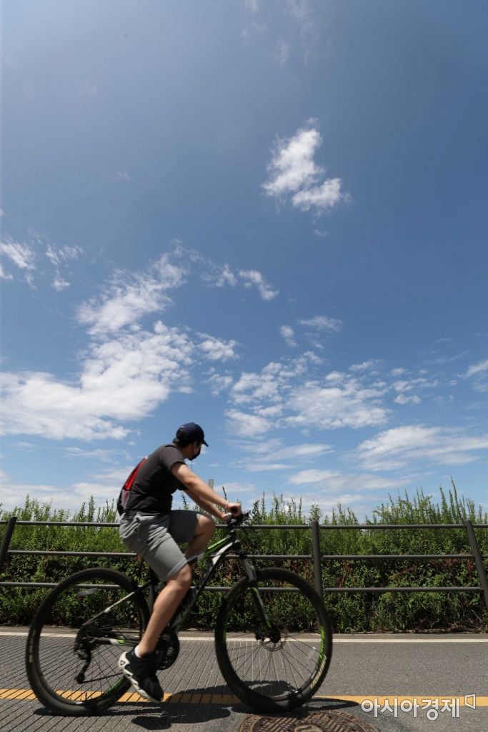 서울 망원 한강공원을 찾은 시민들이 자전거를 즐기고 있다. 윤동주 기자