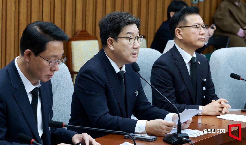권성동 국민의힘 원내대표가 3일 국회에서 열린 원내대책회의에서 발언하고 있다.