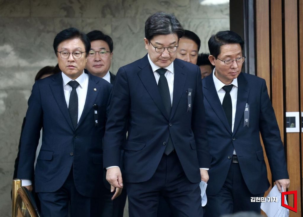 권성동 국민의힘 원내대표가 3일 국회에서 열린 원내대책회의에 참석하고 있다.