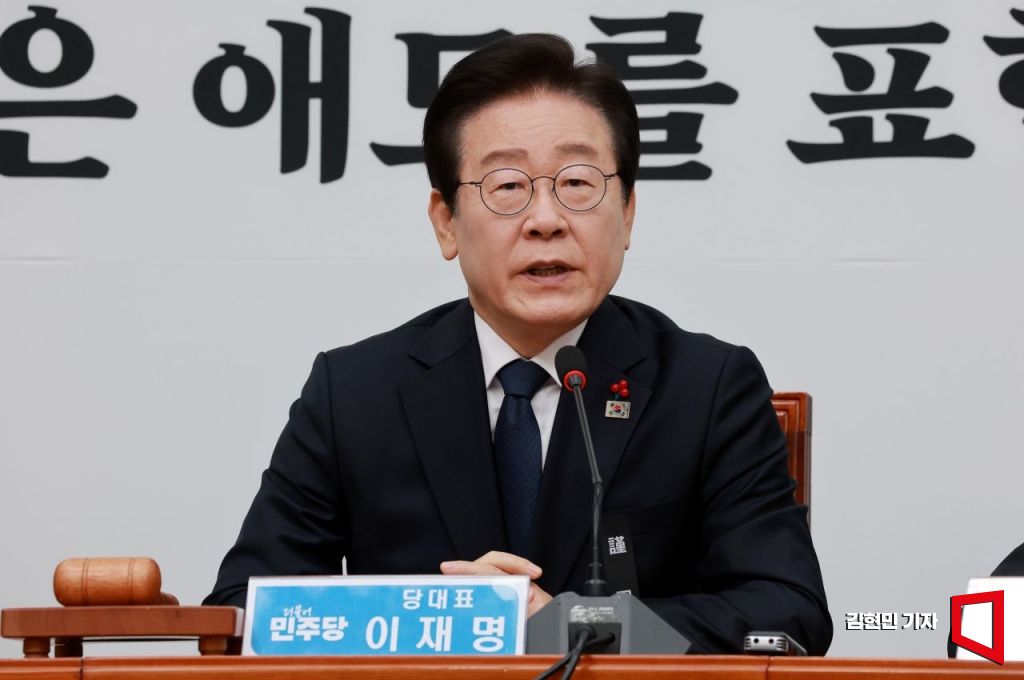 이재명 더불어민주당 대표가 3일 국회에서 열린 최고위원회의에서 발언하고 있다.