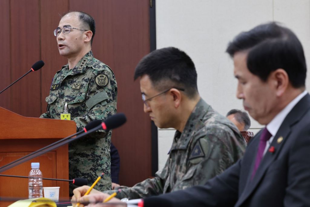답변하는 곽종근 육군 특수전사령관. 오른쪽은 계엄사령관을 지낸 박안수 육군참모총장. 연합뉴스