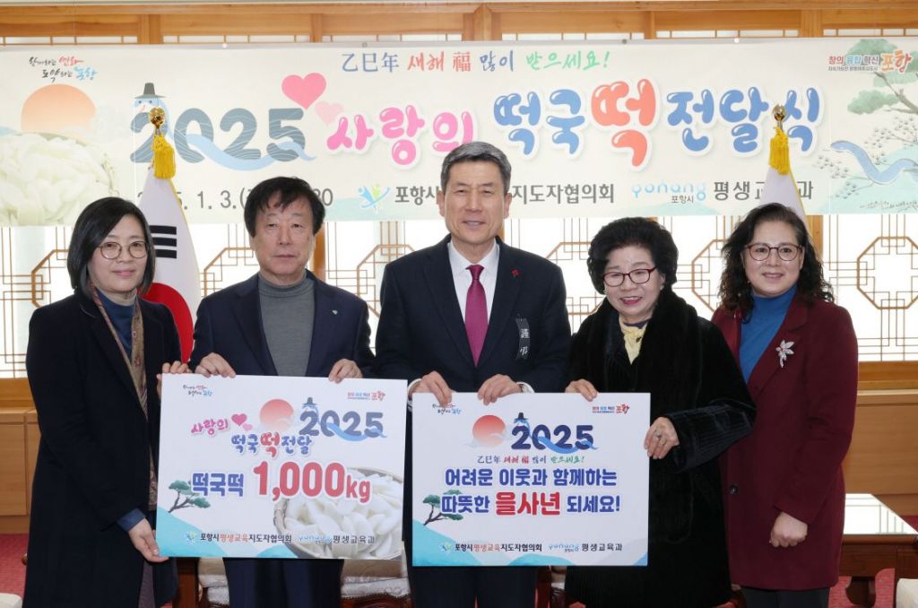 포항시 평생교육지도자협의회는 3일 포항시청을 방문해 1000만원 상당의 떡국 떡 1t을 전달하며 따뜻한 정을 나눴다.