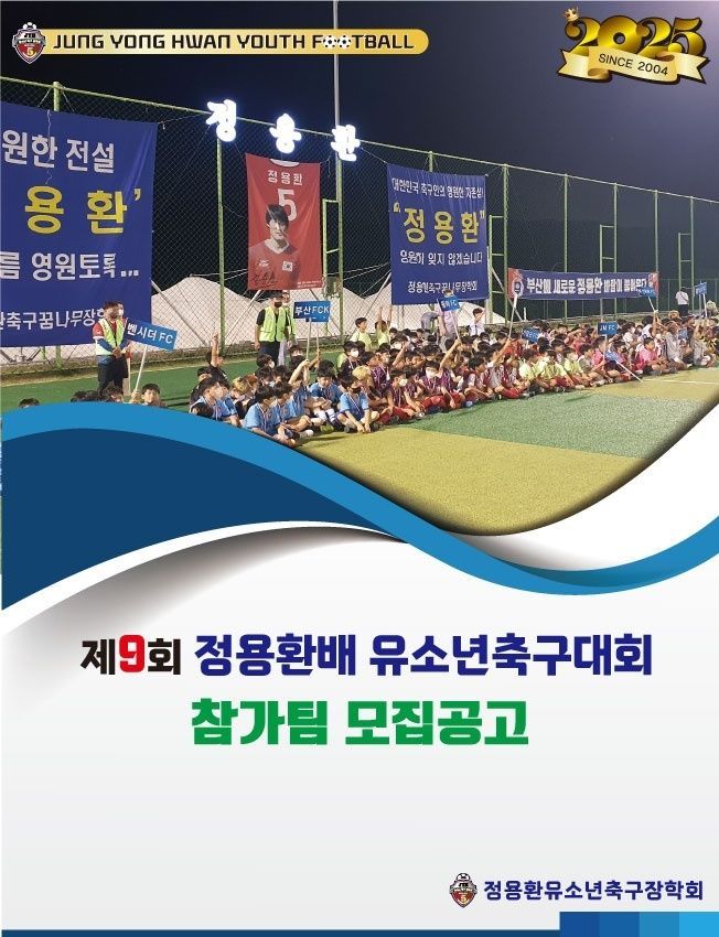 2025 제9회 정용환유소년축구장학회 축구대회는 정용환 선수의 실력에 버금가는 제2의 정용환을 배출하겠다는 기치를 걸고 출전팀을 모집하고 있다. 참가팀 접수는 지난 2일 시작돼 오는 17일까지 진행된다.