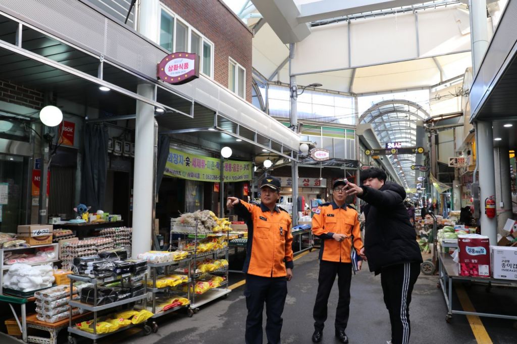 제21대 광주 북부소방서장으로 취임한 황인 신임 서장이 지난 2일 취임식 대신 전통시장을 방문했다. 북부소방 제공