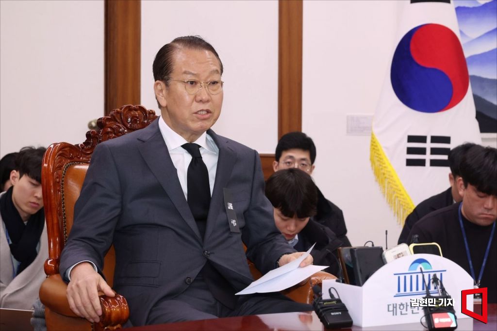 권영세 국민의힘 비상대책위원장이 31일 국회에서 열린 우원식 국회의장 주재 여야 대표 회동에서 발언하고 있다. 김현민 기자