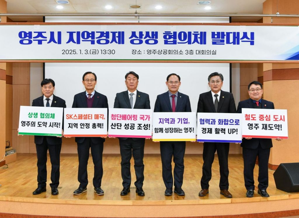 경북 영주시는 2025년 푸른 뱀의 해(乙巳年)를 맞아 3일 영주상공회의소에서 ‘영주시 지역경제 상생 협의체’를 구성하고 발대식을 개최했다.