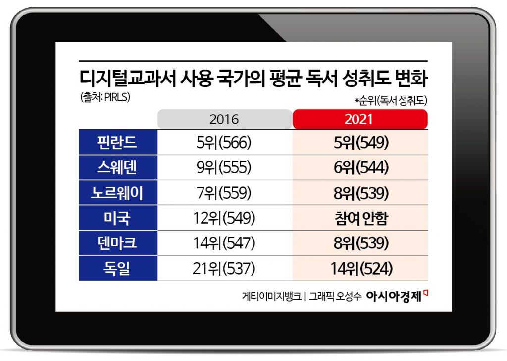 교육선진국으로 꼽히는 스웨덴은 2017년 디지털 교과서를 도입했다가 2023년 철회했다. 나아가 6세 미만 아동에 대해서는 디지털 교과서뿐 아니라 디지털 교육 자체를 전면 중단하고 종이책을 사용한 교육만 사용하기로 했다.
