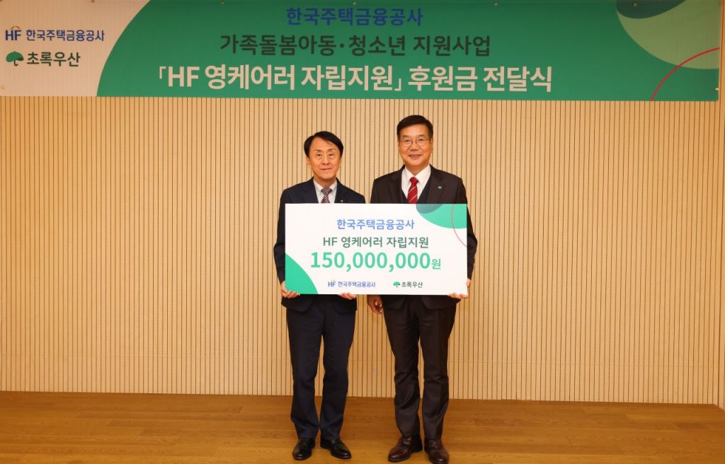 한국주택금융공사(HF, 사장 김경환)는 지난 3일 아픈 가족을 돌보거나 가정의 생계를 책임지는 가족돌봄아동·청소년의 사회적 고립감과 가족돌봄 부담 완화를 위해 초록우산 어린이재단(회장 황영기)에 ‘HF 영케어러 자립지원’ 기부금 1억5000만원을 전달했다.