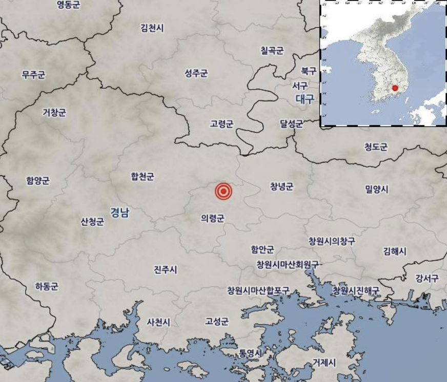 5일 오전 9시 54분께 경남 의령군 봉수면 인근에서 규모 2.1의 지진이 발생했다.