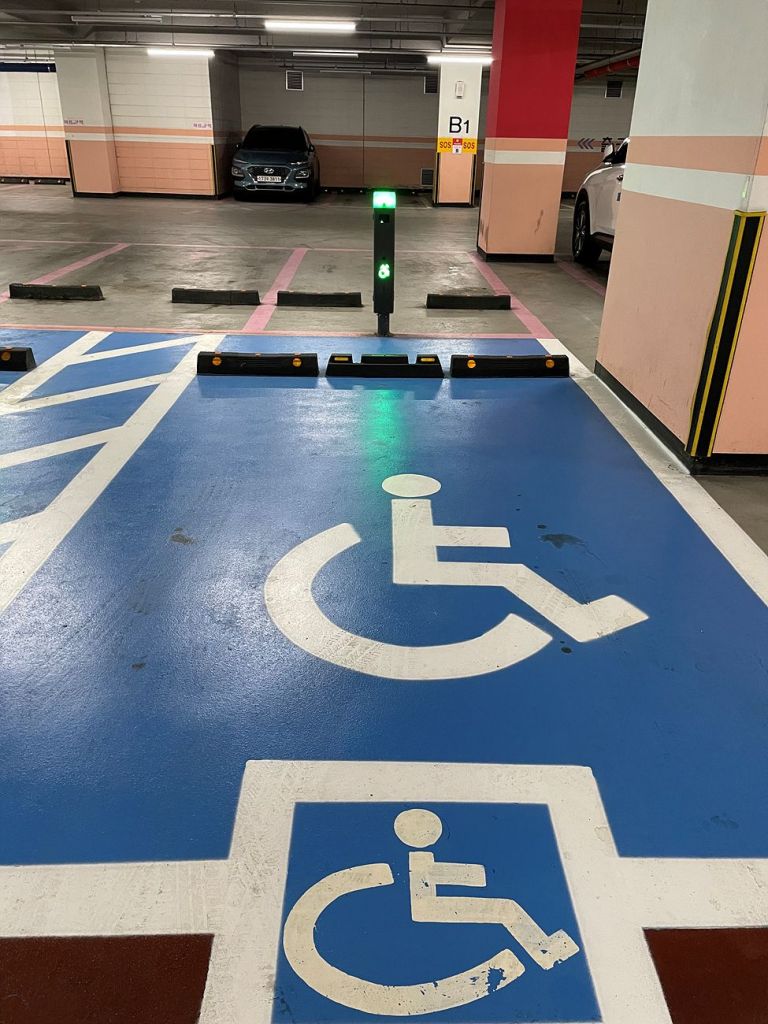 해누리타운 지하 주차장에 설치된 장애인전용주차구역 스마트지킴이 모습. 양천구 제공.