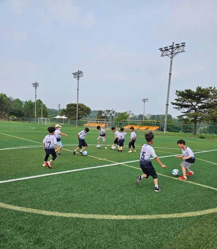 용산어린이정원 스포츠필드 축구장에서 유소년들이 생활체육교실에 참여하고 있다. 용산구 제공.