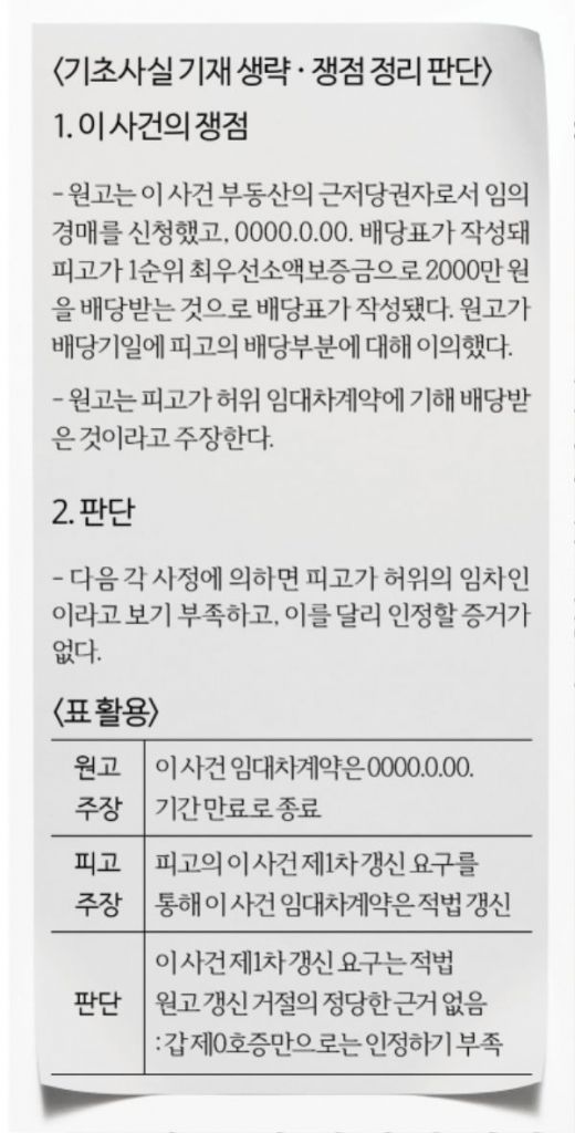 기초 사실 기재 생략, 작성 부담 줄어