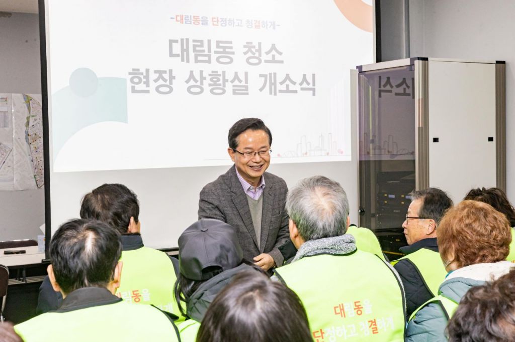 최 구청장은 6일 오후 2시 무단투기 등으로 몸살을 앓고 있는 대림동의 가로 환경 개선과 현장 대응 강화를 위해 대림중앙시장의 고객쉼터에 ‘청소 현장 상황실’을 개소했다.