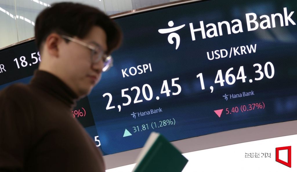 코스피가 사흘째 상승하며 2500선을 회복하며 출발한 7일 서울 중구 하나은행 딜링룸 직원들이 분주하게 움직이고 있다. 이날 코스피 지수는 전장보다 31.77포인트(1.28%) 오른 2,520.41에 코스닥은 전장보다 3.57포인트(0.5%) 오른 721.53에 장을 시작했다.