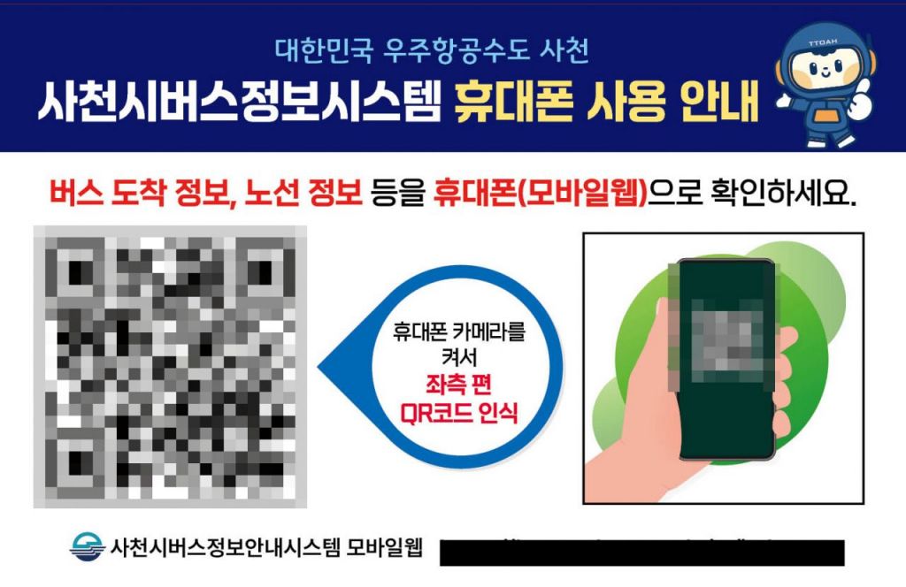 휴대폰으로 네이버 등 포털 앱에서 ‘사천시 버스정보시스템’을 검색해서 이용하거나 휴대폰 카메라로 버스 정류소 내에 부착된 모바일 버스정보시스템 큐알코드를 인식시키면 바로 이용할 수 있다.