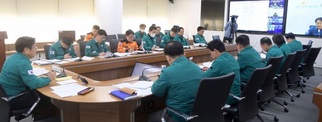 강기정 광주시장이 7일 오전 시청 재난상황실에서 열린 중앙재난안전대책본부 회의에 참석하고 있다. 광주시 제공