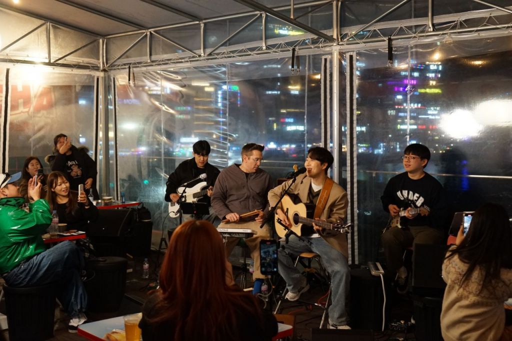 삼진어묵의 팝업 형 루프탑 포차 ‘삼진포차’에서 새해를 맞아 가수 장범준이 깜짝 버스킹을 진행했다.