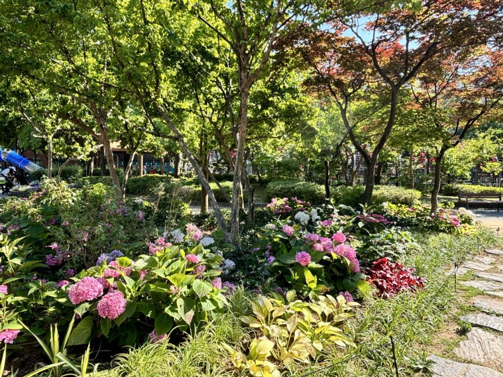 또 분수와 인공 시냇물이 있어 도심에서도 자연의 청량함을 느낄 수 있는 공간으로 주민들에게 사랑받고 있다.
