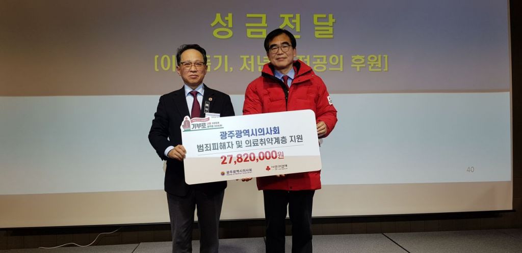 박흥철 광주 사랑의열매 사무처장은 “어려운 이웃을 위해 기부해 준 광주광역시의사회에 감사하다”며 “도움이 필요한 피해자 가족들과 의료 사각지대 이웃들에게 소중히 전달하겠다”고 말했다.