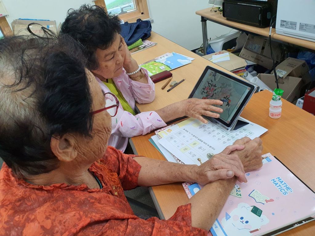 성인문해교육이란 한글 교육을 기본으로 태블릿PC를 활용한 금융·키오스크 활용 등 실생활에 필요한 생활 문해교육을 통해 어르신들 삶의 질을 높이는 평생교육 사업이다.