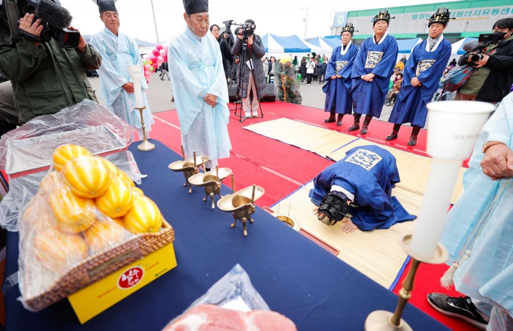 참외 조수입 7천억 달성을 기원하는 참외 헌과의식 모습. [사진=성주군]