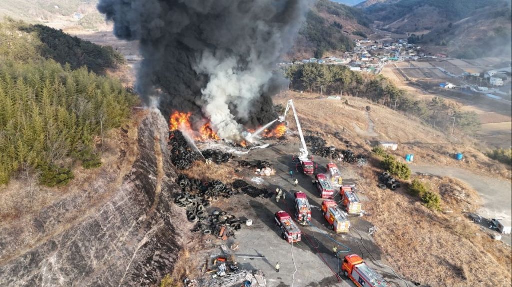 경남소방본부에 따르면 현재까지 인명피해는 없으나 현장에 쌓인 폐타이어 등 90t가량에 불이 붙으며 진화에 오랜 시간이 걸릴 것으로 예상됐다.