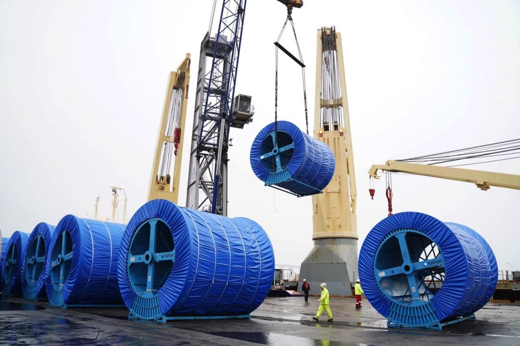 대한전선이 유럽으로 수출한 초고압케이블을 작업자들이 장비로 옮기고 있다. 대한전선 제공