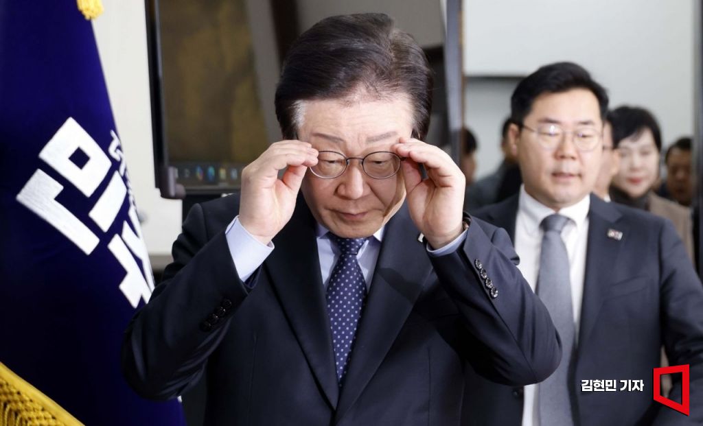 이재명 더불어민주당 대표가 10일 국회에서 열린 최고위원회의에 참석하고 있다.